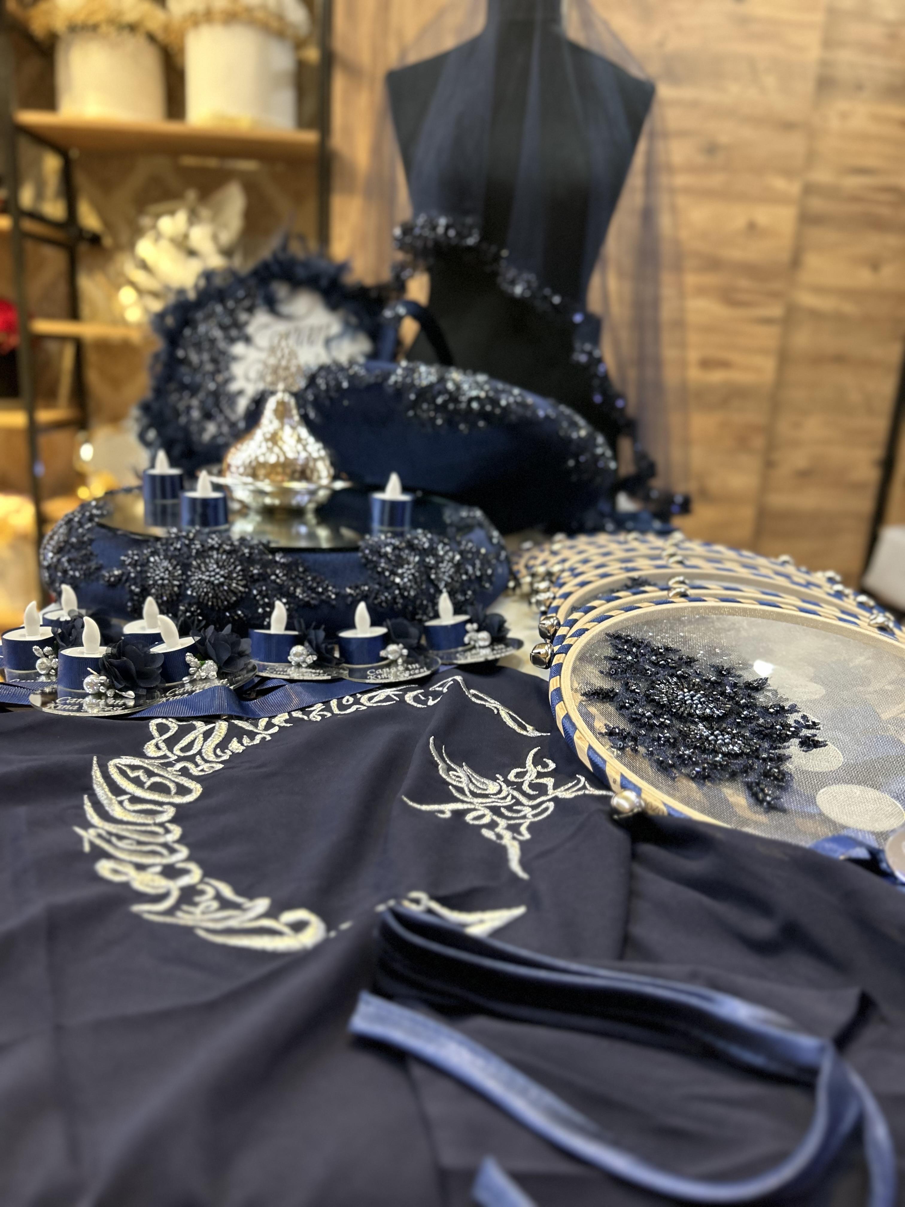 -Yaprak duvak kuşak eldiven ve el gülü set