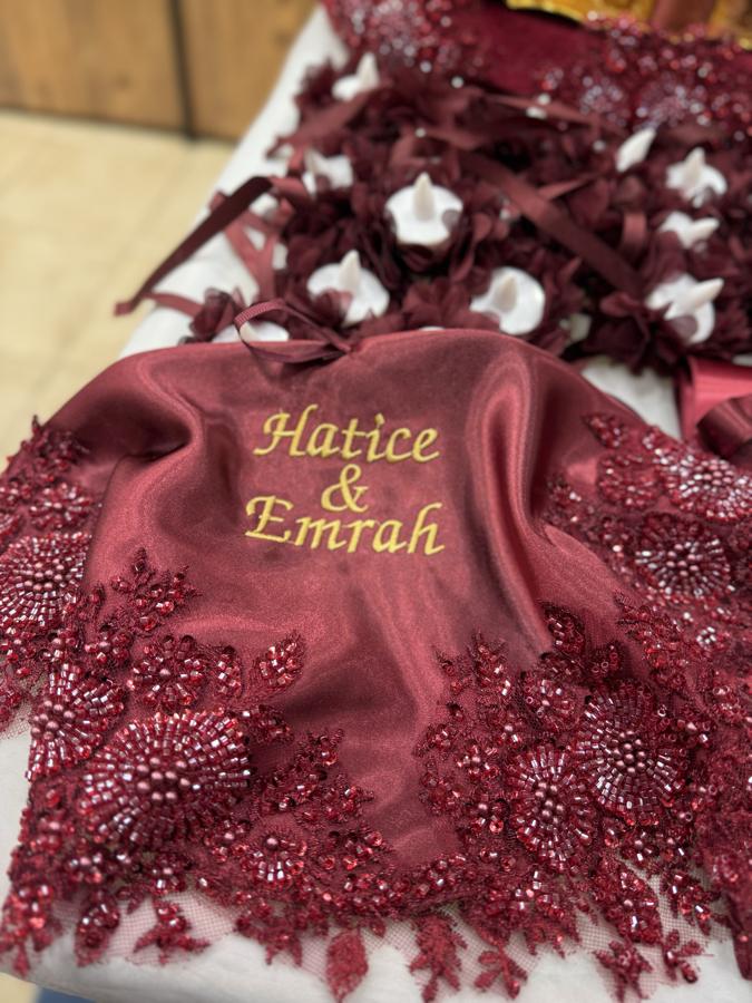 Set içerisinde; -İşlemeli gelin duvak -Gelin kuşak, 2 eldiven, 2 el gülü -Saten isimli gelin mendili -İsimli yelpaze -İşlemeli gelin tefi -İşlemeli sepet ve tepsi -Testi -10 adet ledli mum -10 adet nedime kasnak tef bulunmaktadır ▪️Ürünleri Kırmızı, Bordo, Yeşil, Lacivert, Gold , Siyah renklerini tercih edebilirsiniz. Ürün üzerindeki detayları gold veya gümüş olarak isteyebilirsiniz.Siparişi tamamlarken açıklama kısmına ürünlerin üzerine yazılmasını istediklerinizi belirtiniz.