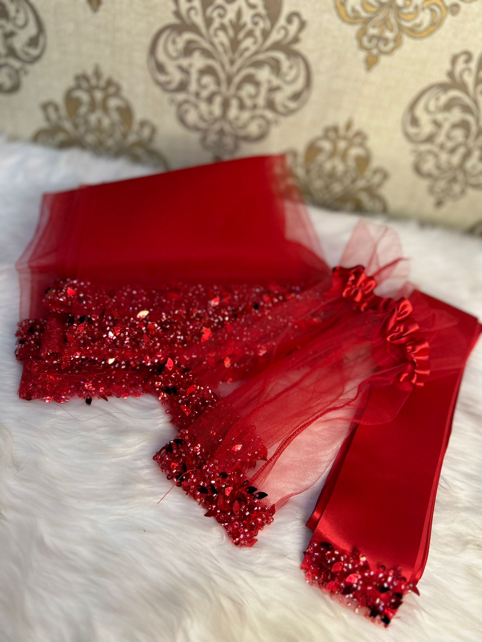 Duvak, kuşak, eldiven olarak üçlü settir.