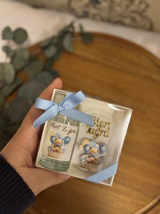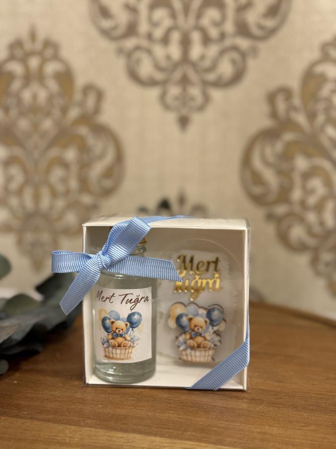 Kutu içerisinde pleksi magnet ve cam şişede Selin marka limon kolonyası bulunmaktadır