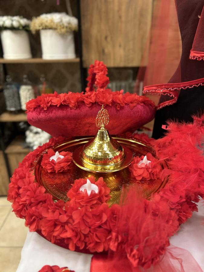 Lazer Çiçekli Kına Tepsisi Sepeti