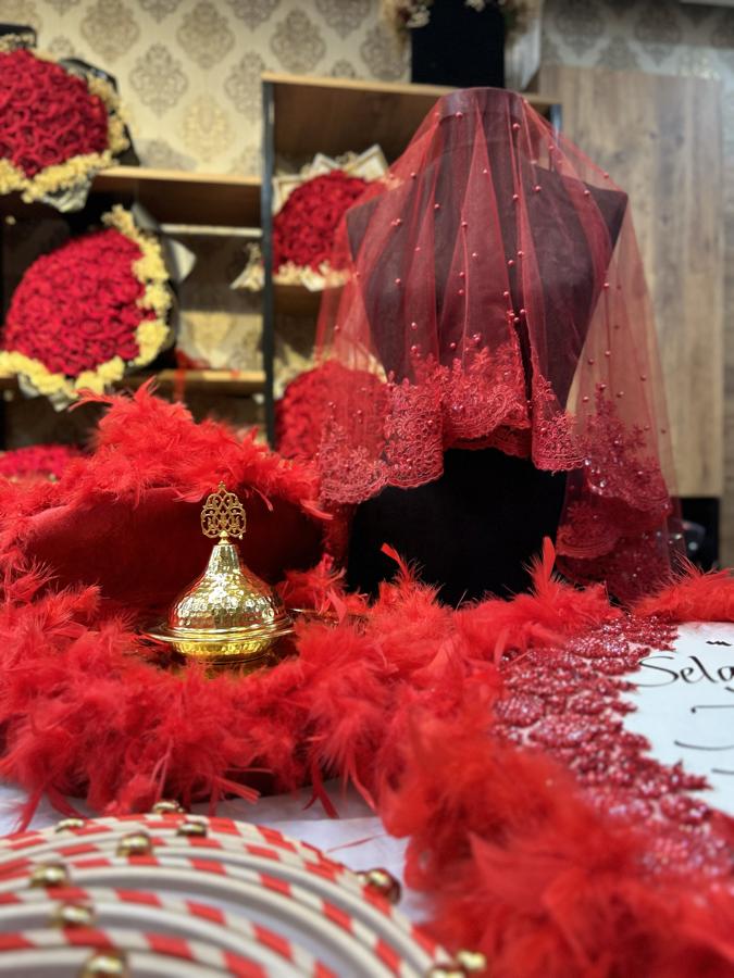 -İncili Narin Duvak kuşak eldiven ve el gülü set