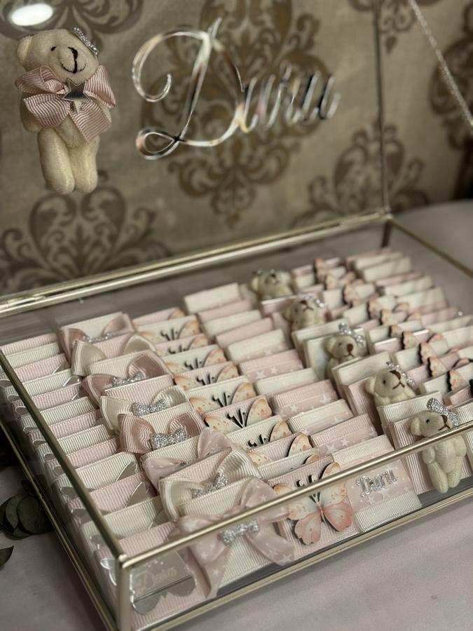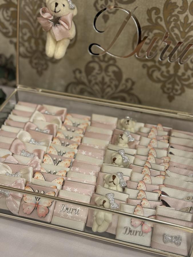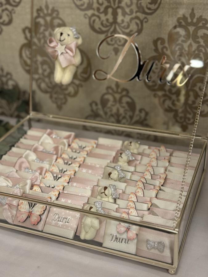 Kutu içerisinde 120 adet melodi marka çikolata bulunmaktadır. Her biri kurdele , pleksi, uv baskı süslemelidir