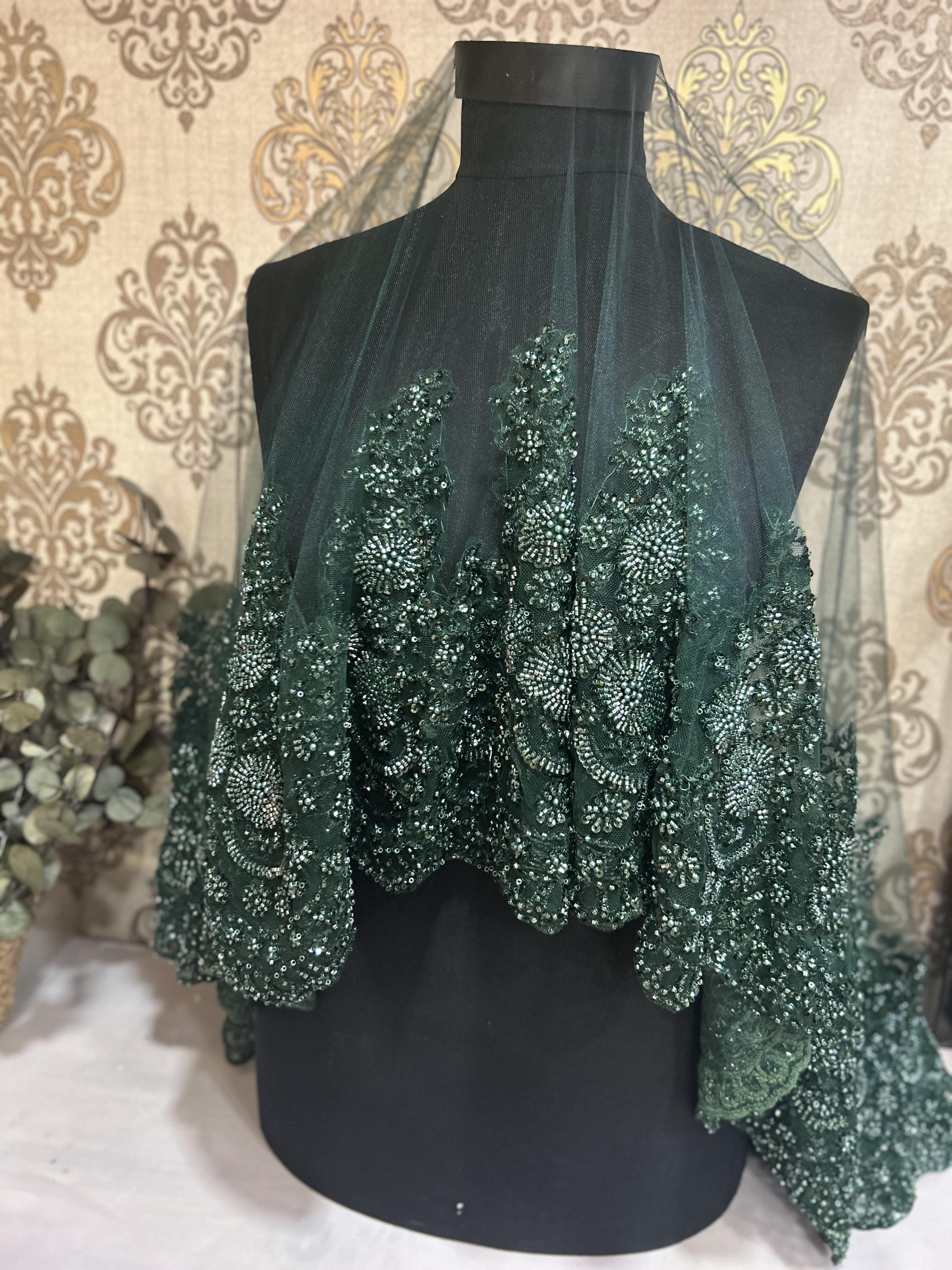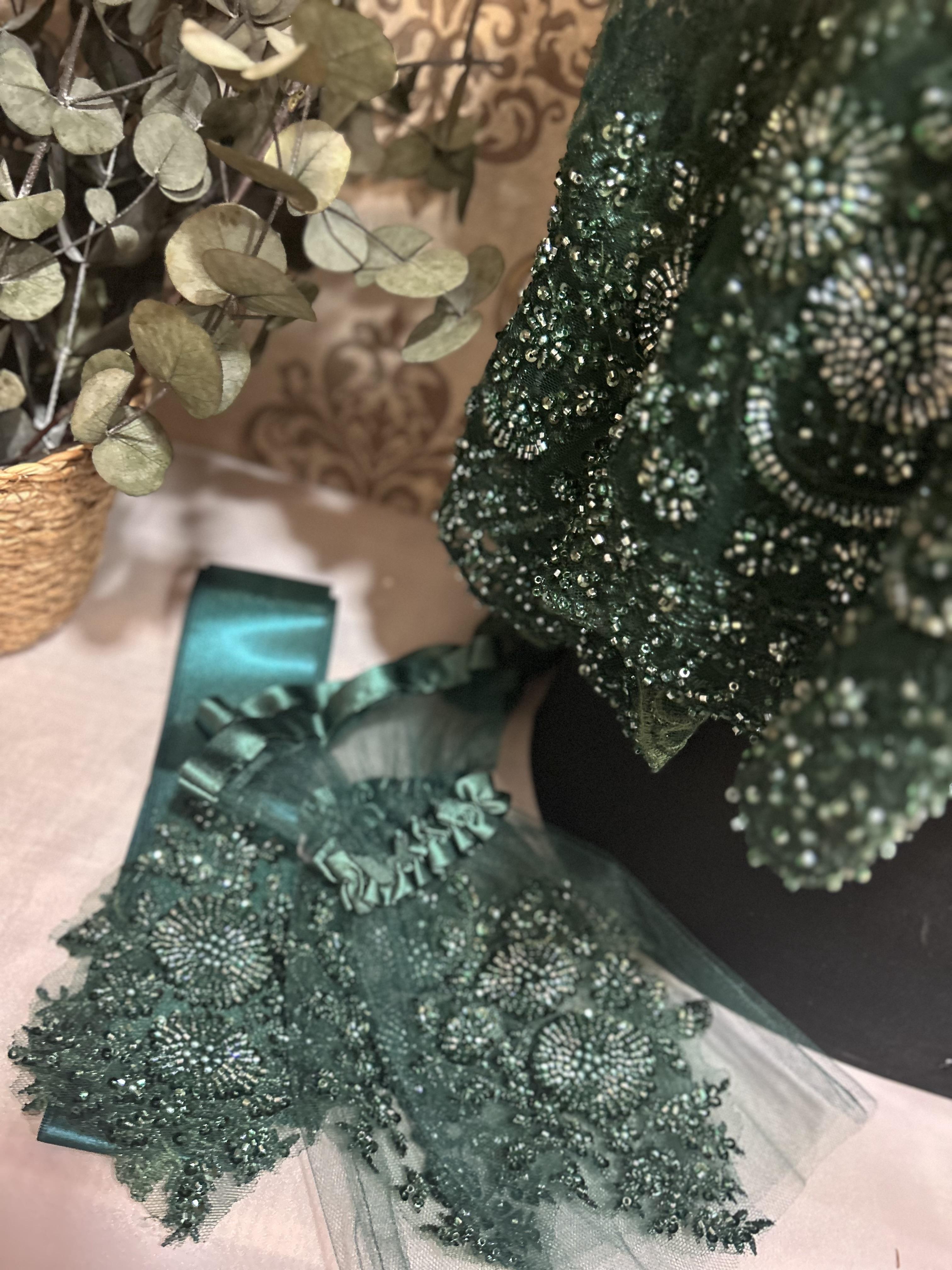 Zümrüt Yeşili Geniş Vip Duvak Set
